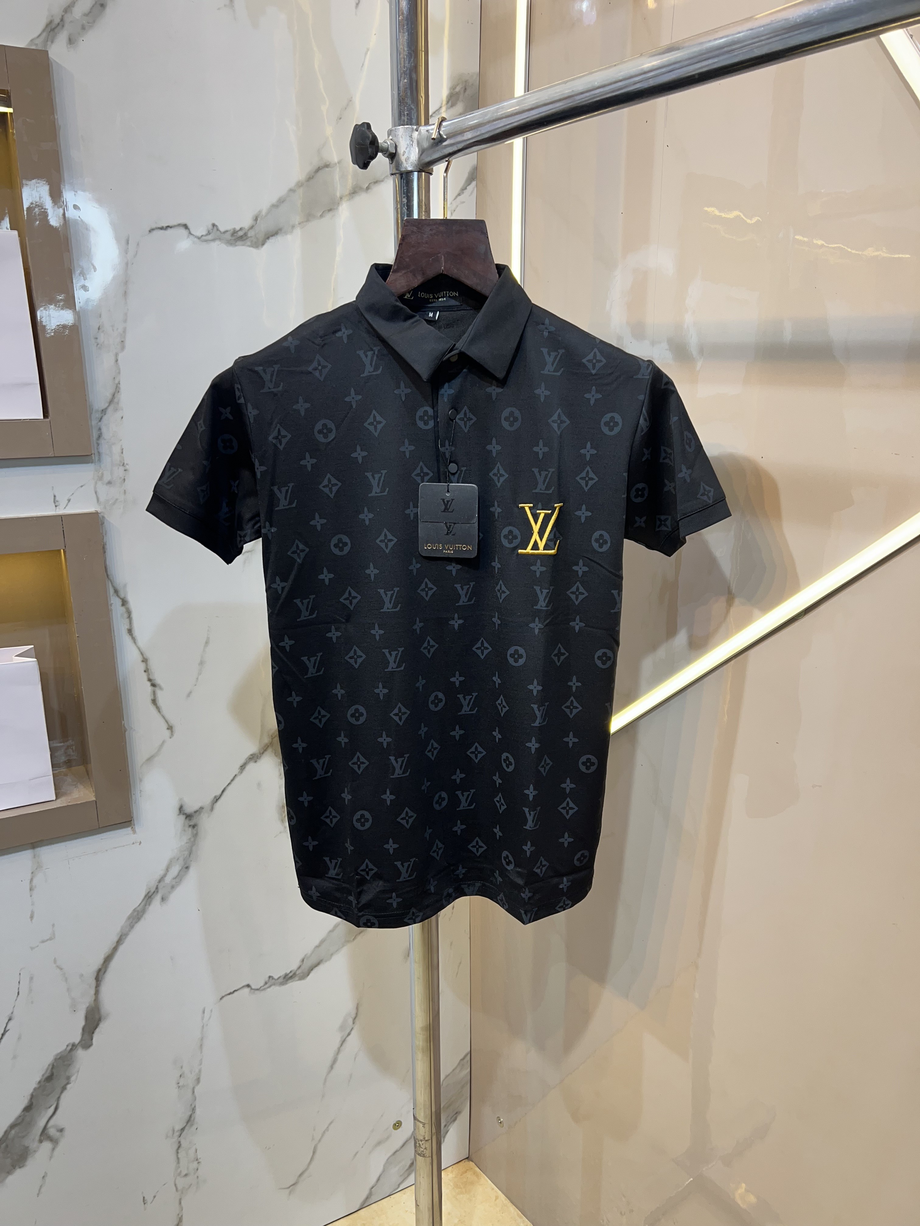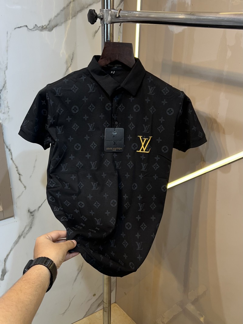 LOUIS VUITTO-N IMPORTED ALL OVER MONOGRAM EMBOSSED PRINTED VERY PREMIUM POLO TSHIRT WITH BRAND CARRY BAG